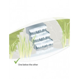 Ces caissons plastiques sont connectables entre eux (en largeur ou en hauteur) et permettent de créer une lame d'eau ou une cascade.