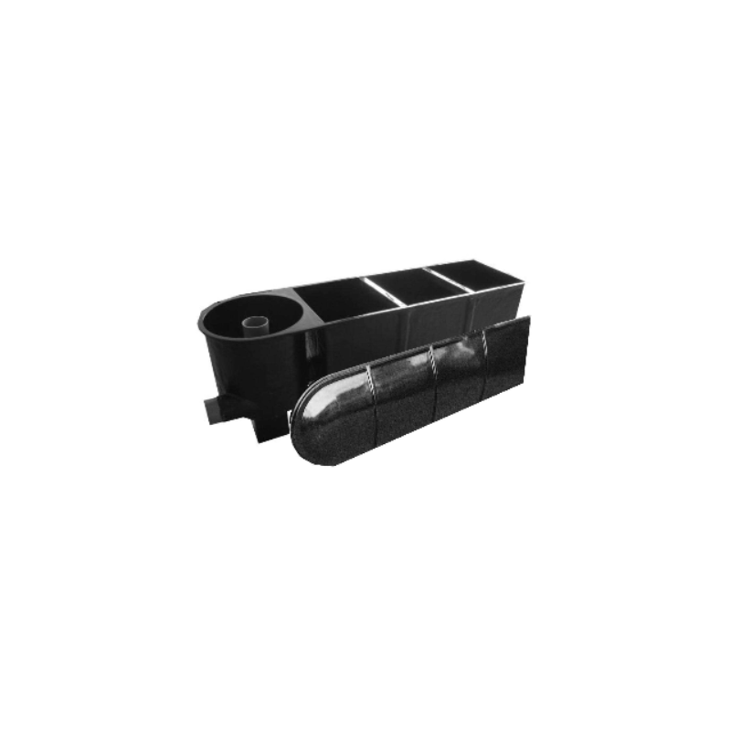 Filtre Vortex multi-chambre polyester avec couvercle. Permet l'épuration de l'eau grâce aux masses filtrantes incluses (brosses et mousses)