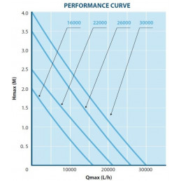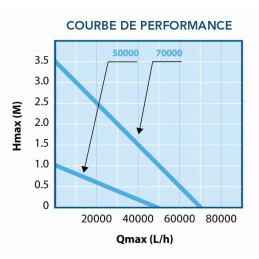 - 22000 l/h 95 watt 2.6 ml de hauteur de refoulement sortie 75 mm(pompe bleue)