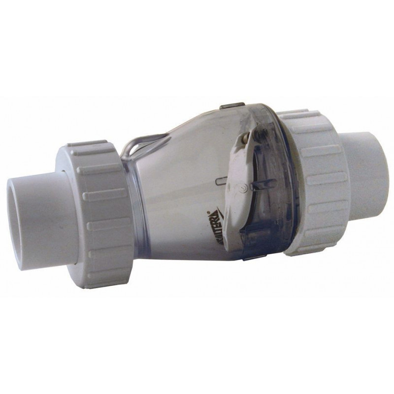 Clapet anti retour à clapet FF, en plastique transparent pour faciliter la visibilité du flux.